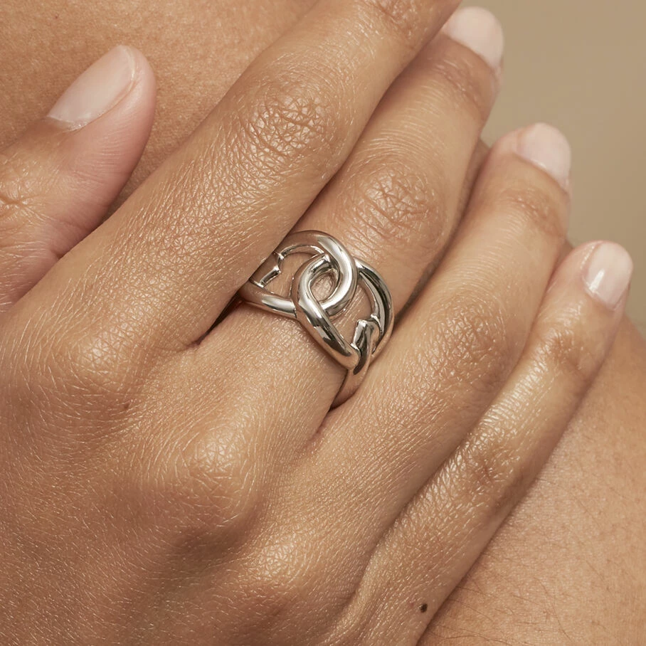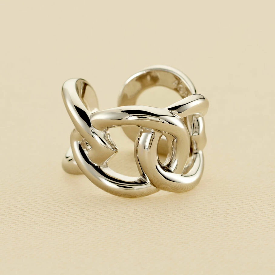 Bague ouverte en argent véritable avec un jeu de gouttes entrelacées. PM: 48/50 – MM: 52/54 – GM: 56/58