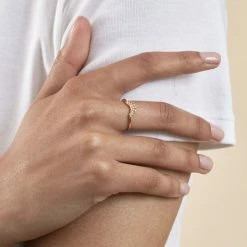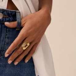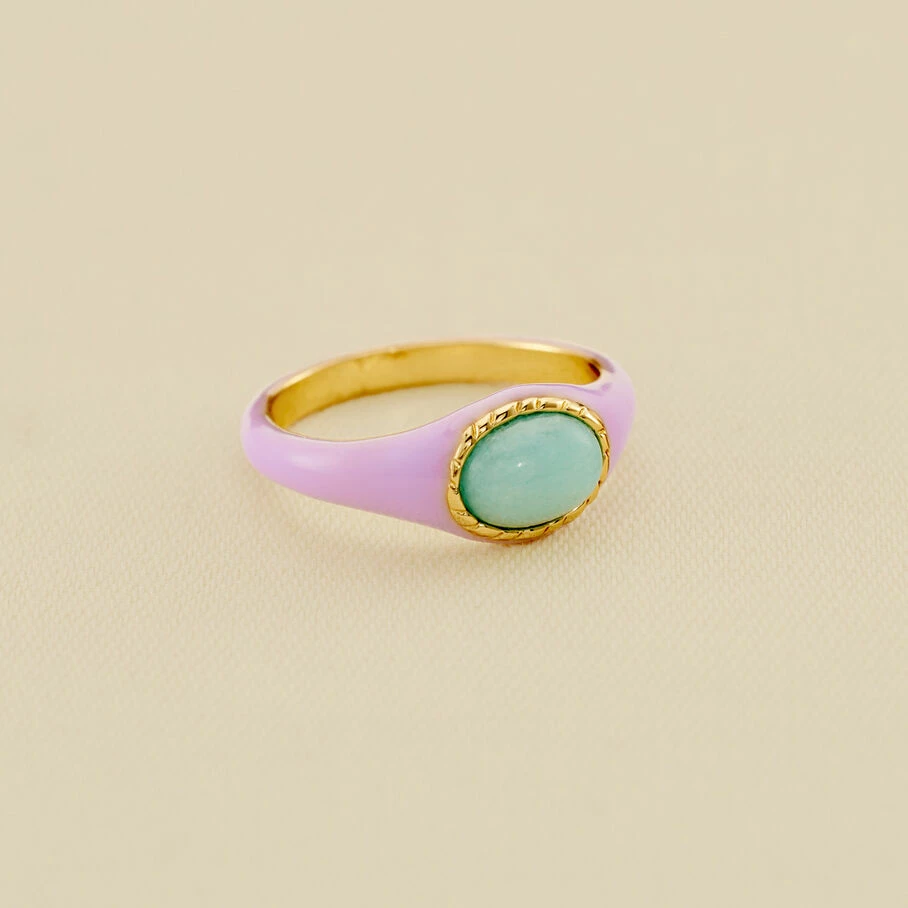Bague fine, en laiton doré 750/1000, émaillée avec une pierre naturelle au centre.
