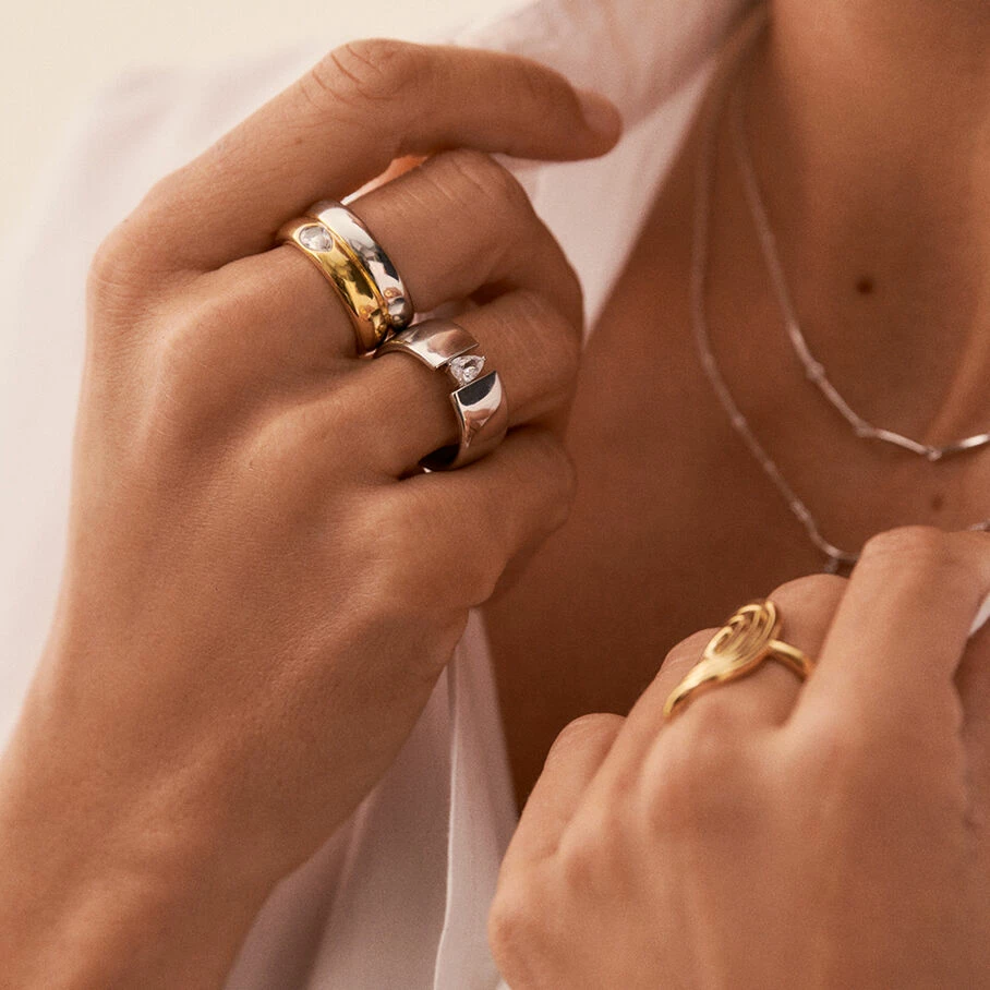 Deux joncs, en argent véritable et argent véritable doré 750/1000, dont l’un avec un oxyde de zirconium serti dans le corps de bague
