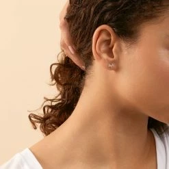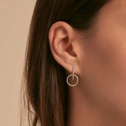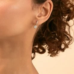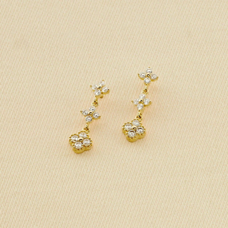 Boucles d’oreilles mi-longues, en argent véritable doré 750/1000, constituées d’un dégradé de 3 fleurs d’oxydes de zirconium et d’un fin graineti sur le pourtour