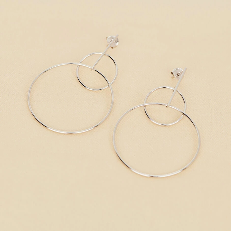 Boucles d’oreilles en argent véritable formées d’un jeu graphique de cercles évidées entrelacées et de tiges