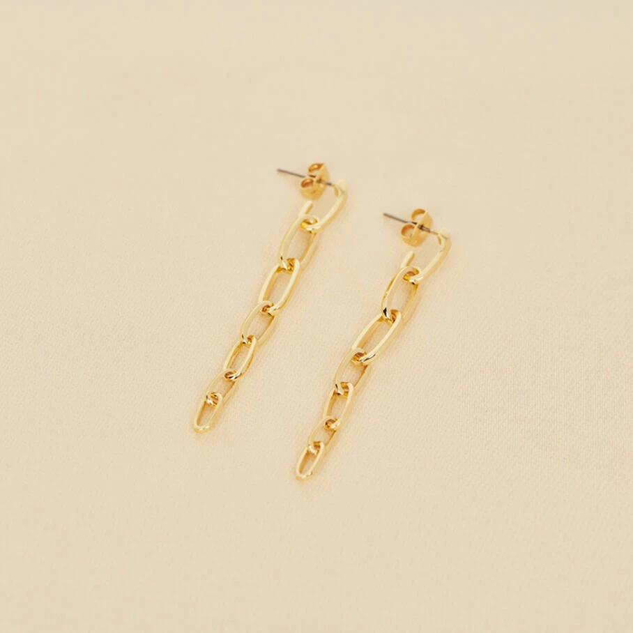 Boucles d’oreilles linéaires, en laiton doré 750/1000, faites de maillons allongés et ovales