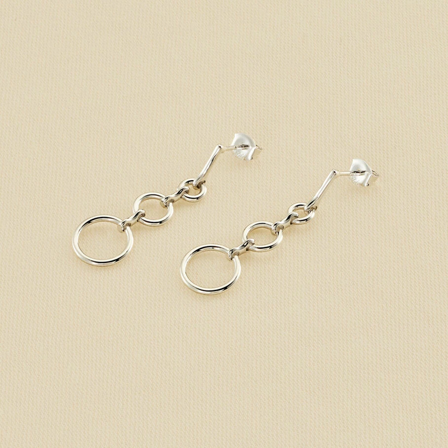 Boucles d’oreilles mi-longues, en argent véritable, composées d’un dégradé de trois anneaux évidés