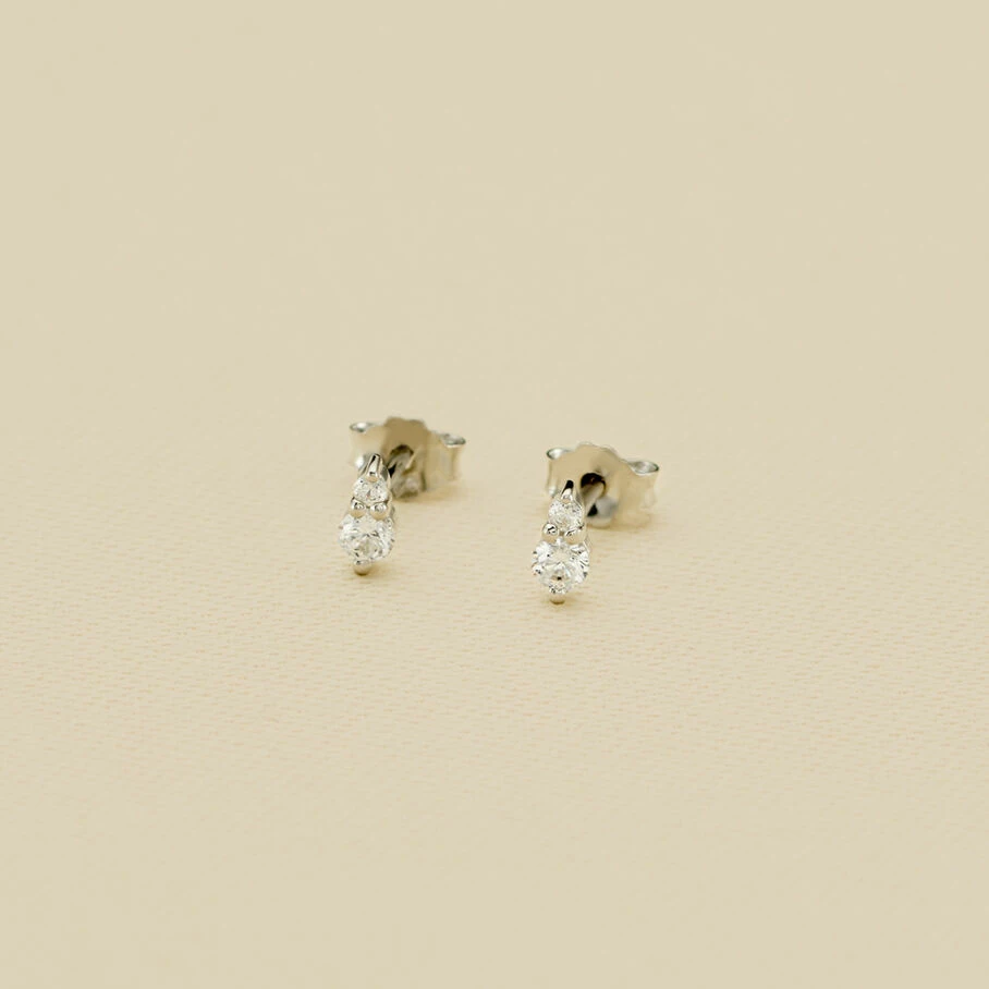 Boucles d’oreilles puces, en argent véritable, serties de deux oxydes de zirconium