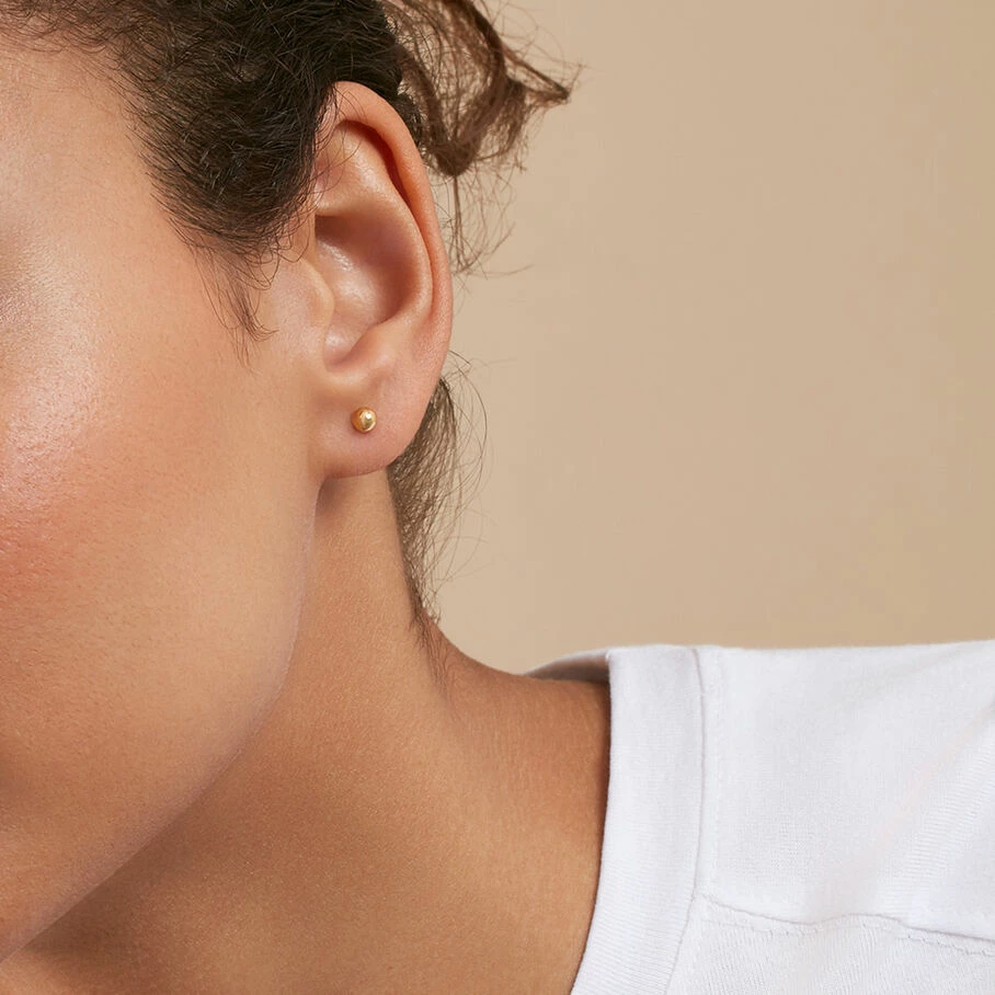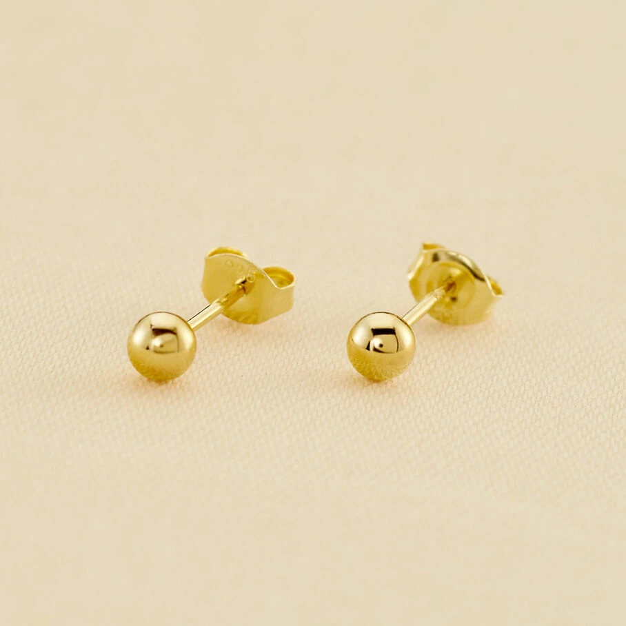 Boucles d’oreilles puces 4mm, en argent véritable dorées 750/1000, ornées d’une boule