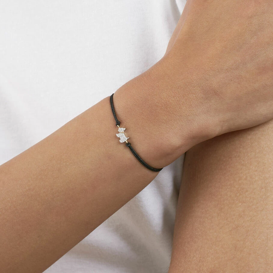Bracelet cordon, en argent véritable doré 750/1000, orné d’un chien finement serti d’oxydes de zirconium