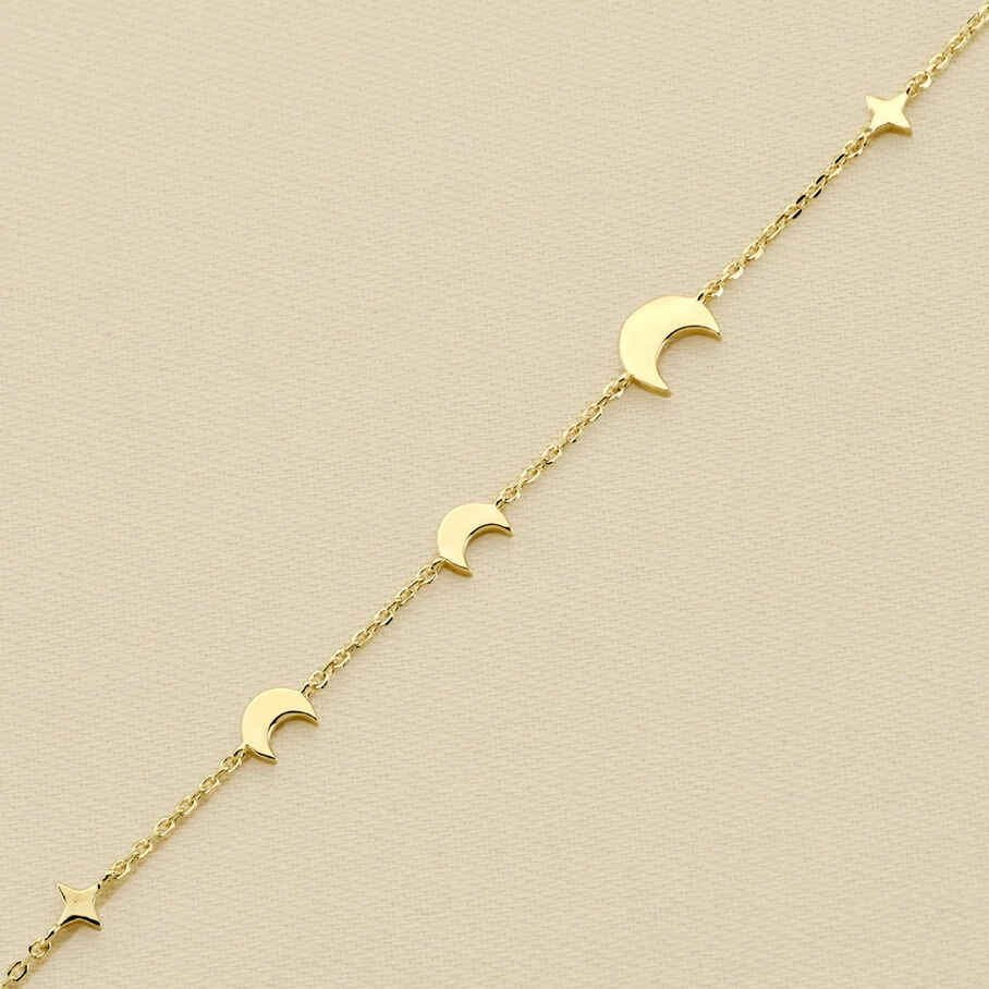 Bracelet, en argent doré 750/1000, dont les pendentifs, sur une fine chaine maille forçat, représentent le cycle lunaire