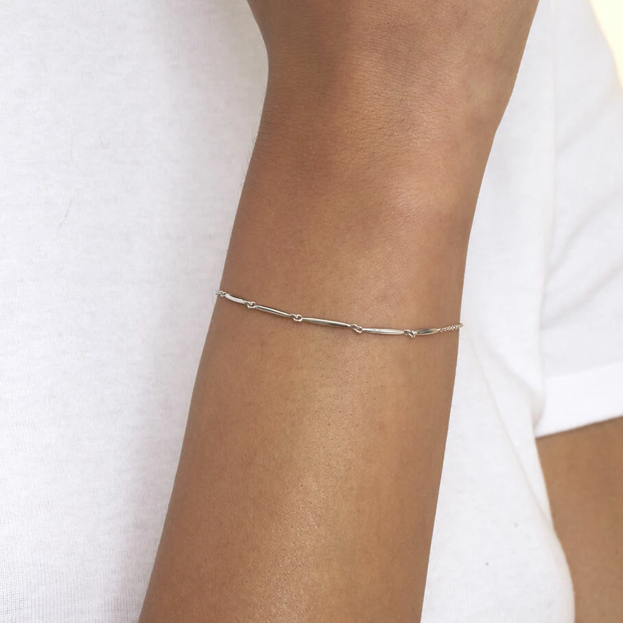 Bracelet chaine fine, en argent véritable 925/1000, orné de cinq motifs rayons de soleil.