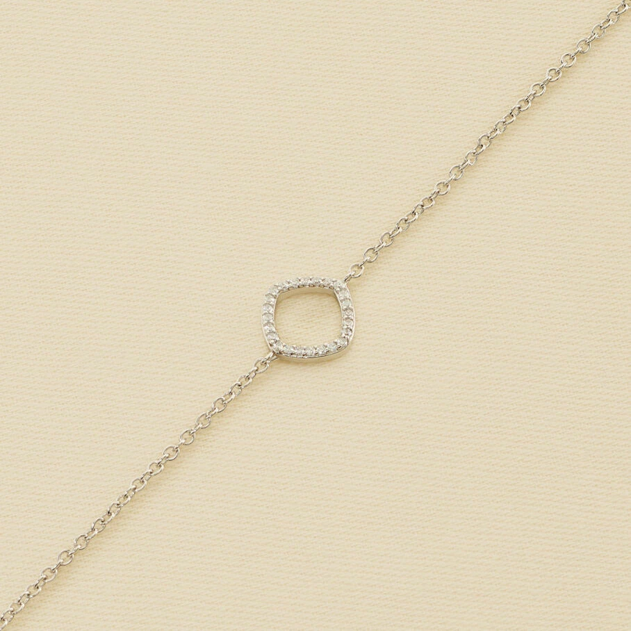 Bracelet souple en argent véritable orné d’un carré évidé pavé d’ oxydes de zirconium