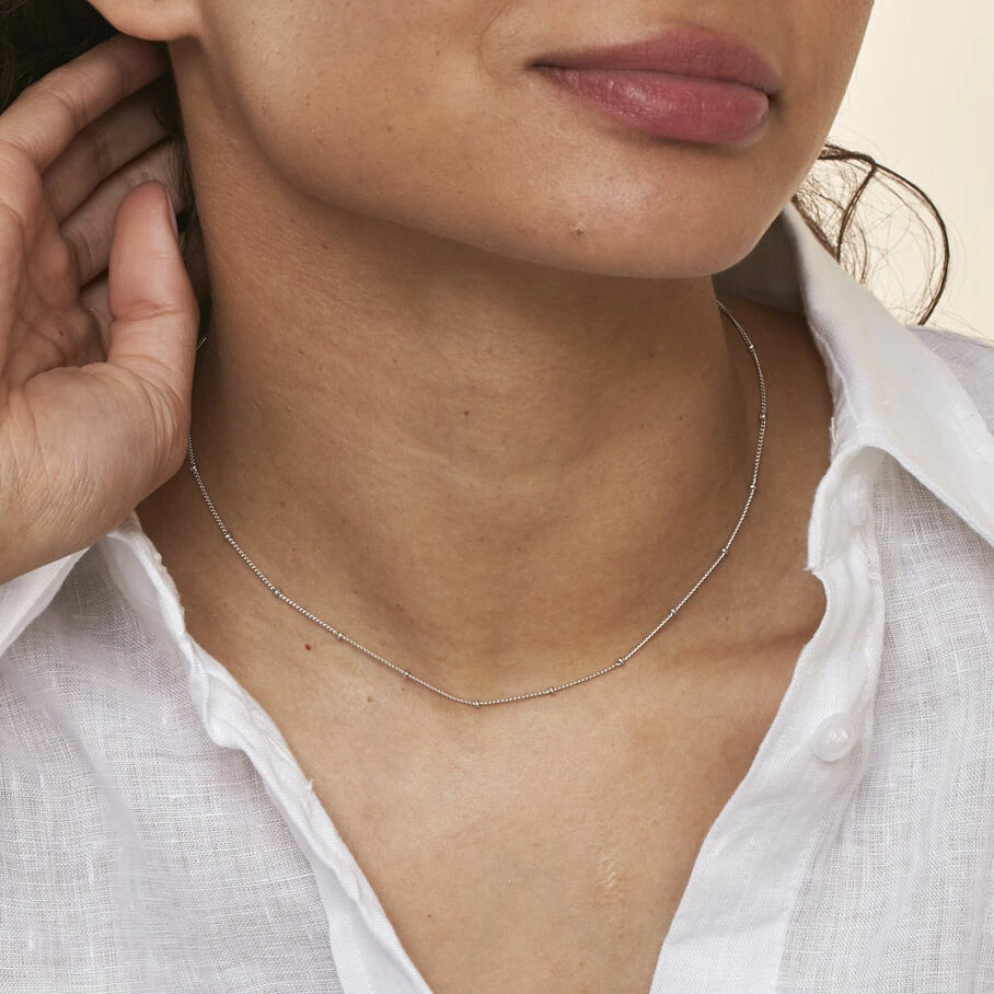 Chaîne courte en argent véritable, chaîne forçat et mini boules