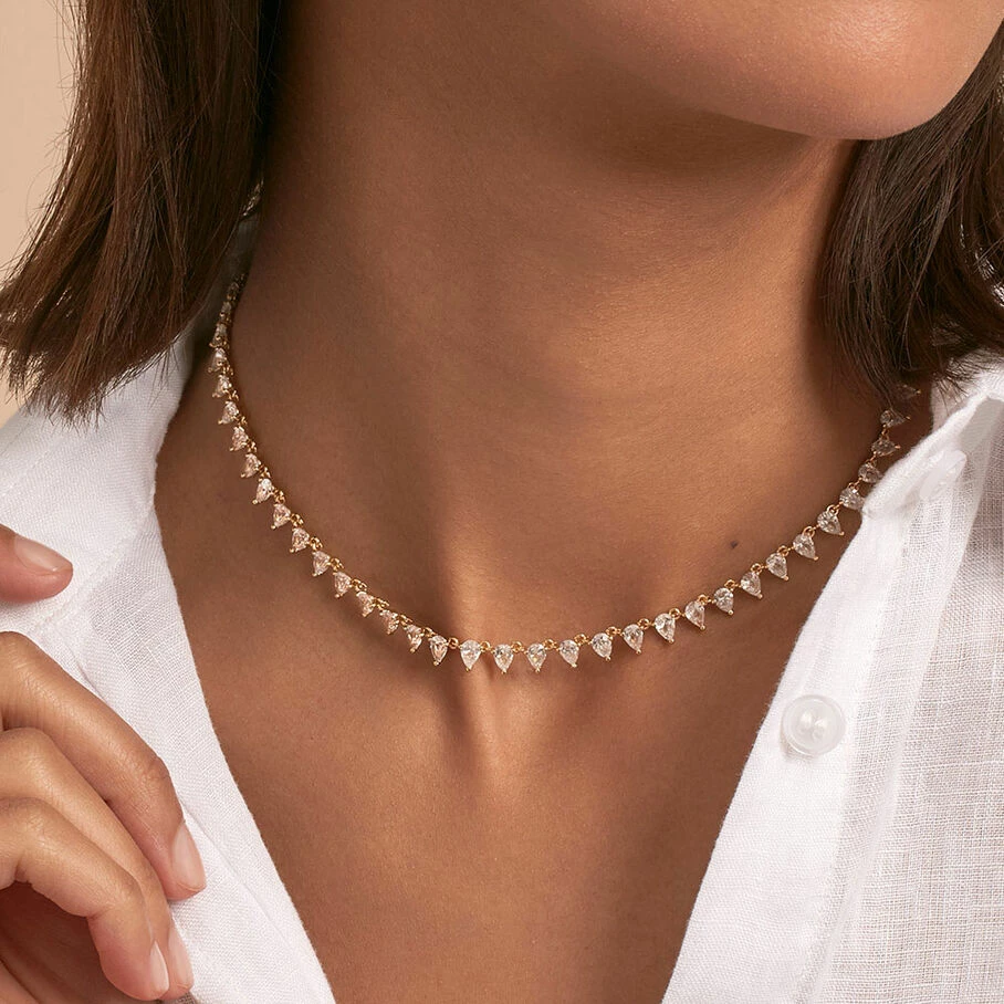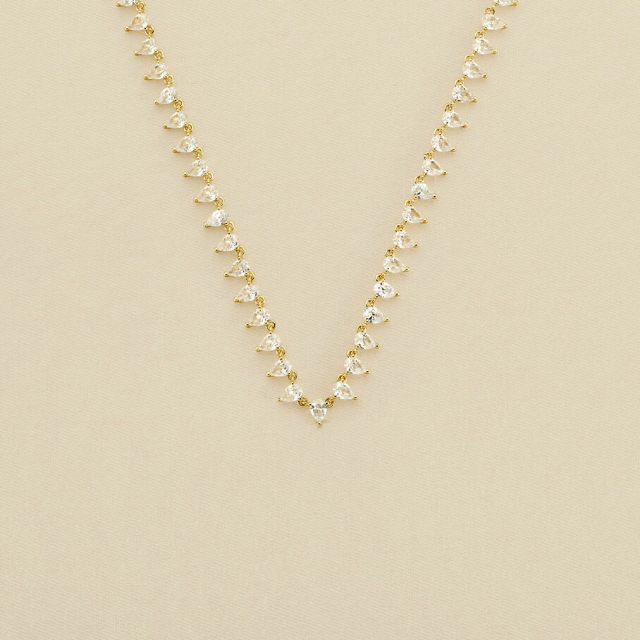 Collier court, en laiton doré 750/1000, entièrement sertis d’oxydes de zirconium de forme trillion
