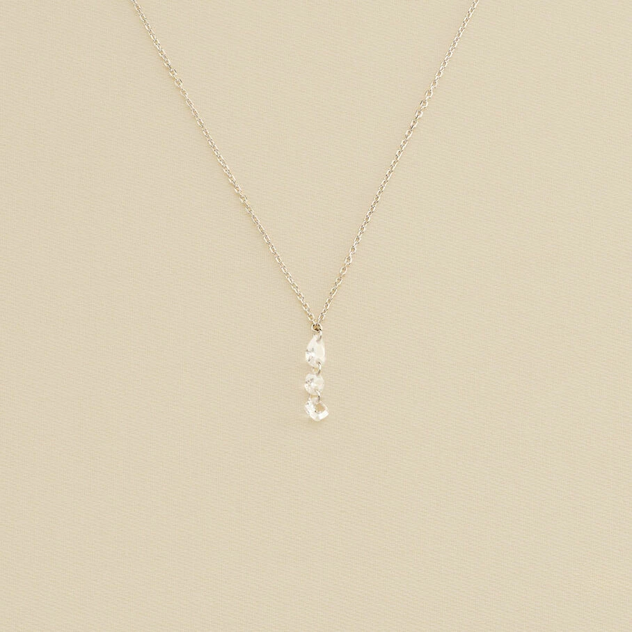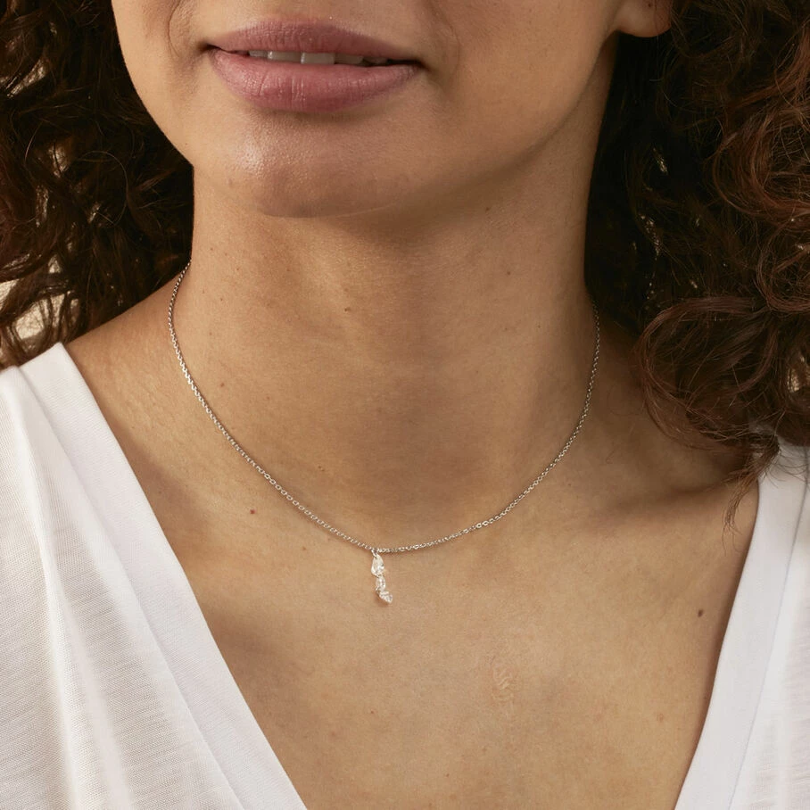 Collier court, en argent véritable, avec un pendentif composé d’une trilogie d’oxydes de zirconium percés en forme de poire, rond et coussin