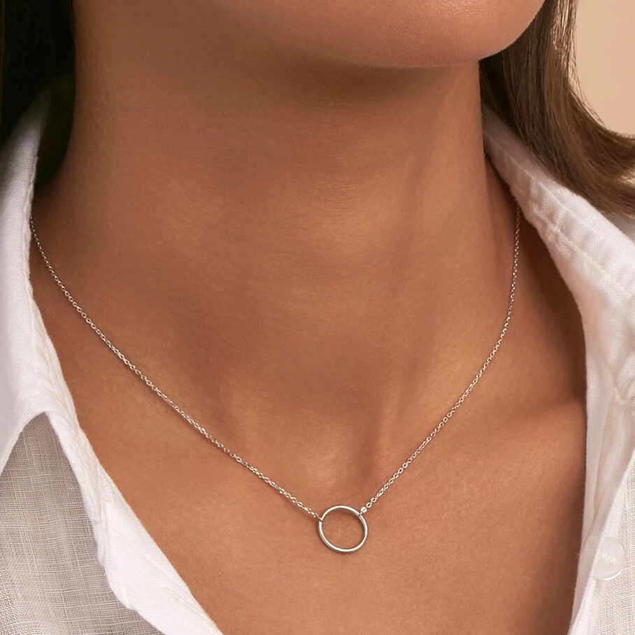 Collier court, en argent véritable, avec un anneau évidé monté sur une chaine fine