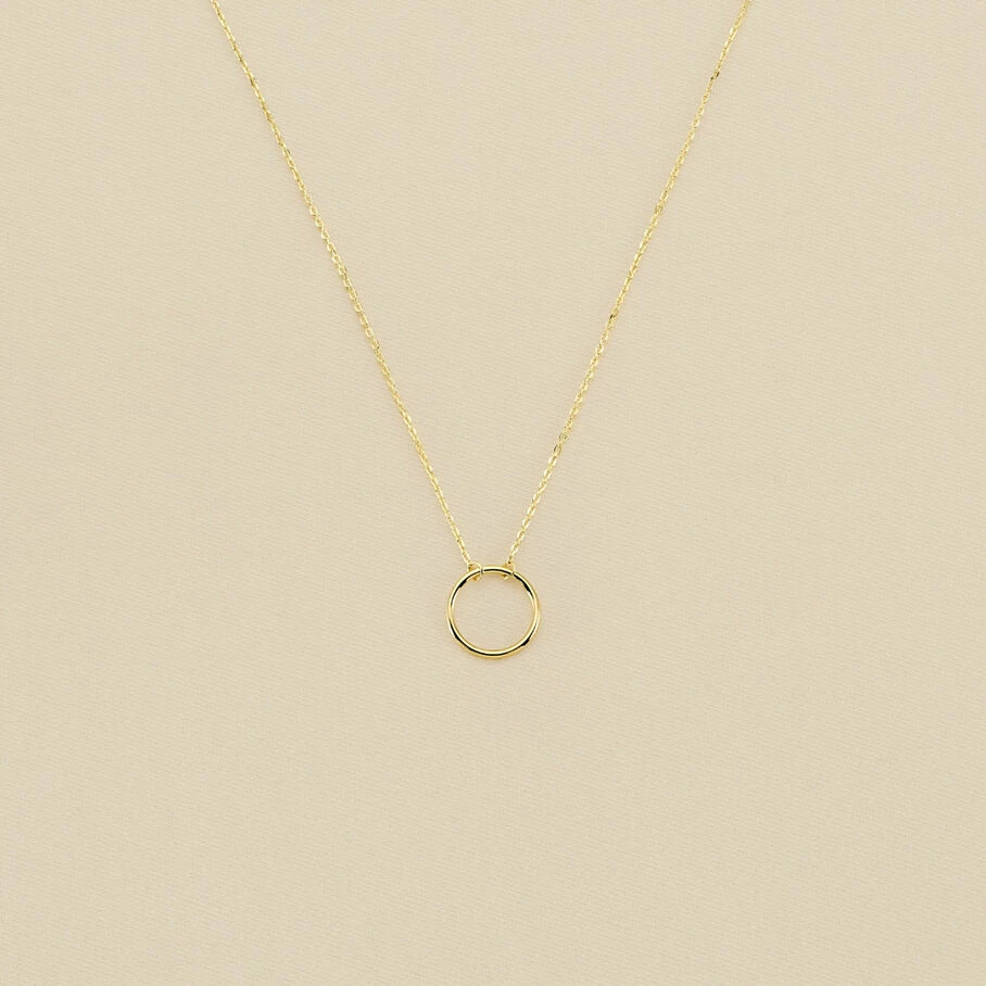 Collier court, en argent véritable doré 750/1000, avec un anneau évidé monté sur une chaine fine