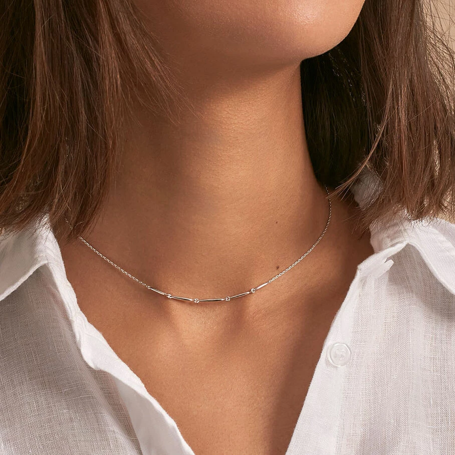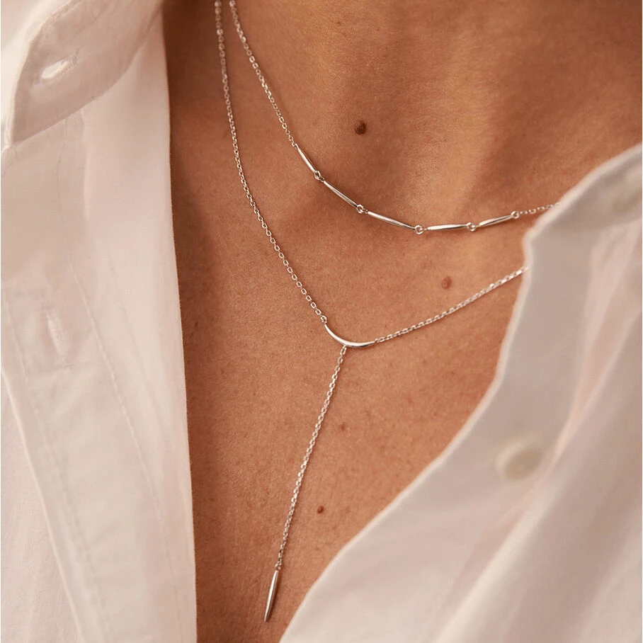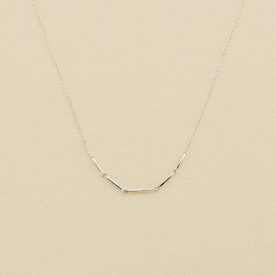 Collier chaine fine, en argent véritable 925/1000, orné de cinq pampilles rayonnantes.