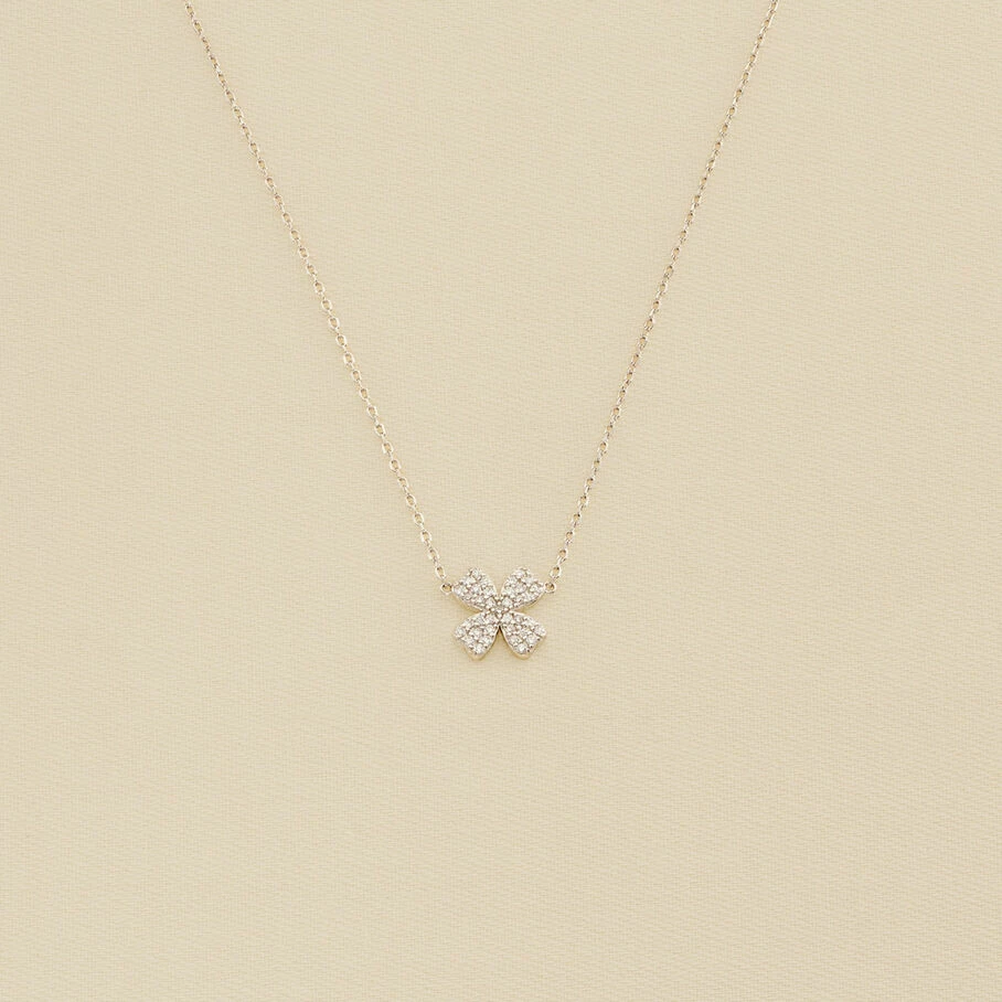 Collier court en argent véritable orné d’un trèfle à quatre feuilles pavé d’oxydes de zirconium