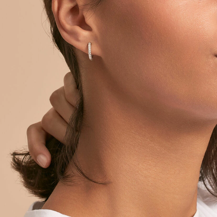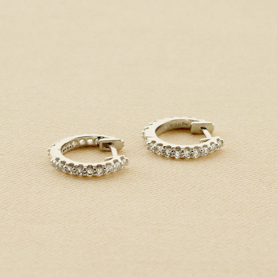 Boucles d’oreilles mini-créoles en argent véritable pavées d’oxydes de zirconium