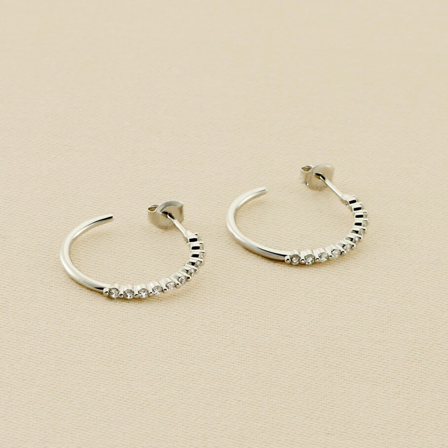 Créoles de 20mm de diamètre, en argent 925/1000, sur laquelle ont été sertis clos une série d’oxydes de zirconium