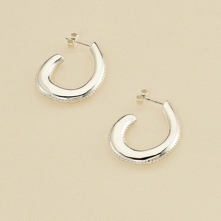Créoles, grand modèle, en argent 925/1000, représentant une demi goutte et dont la tranche est sertie d’oxydes de zirconium