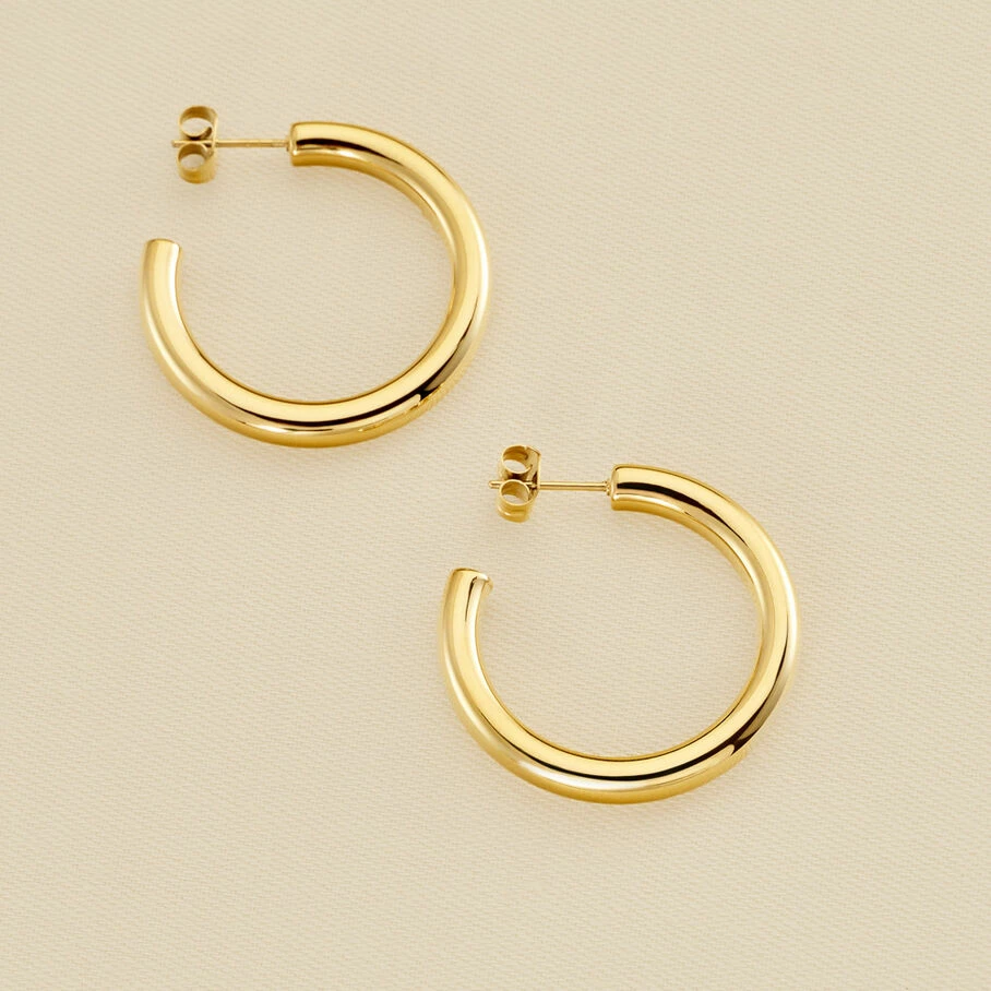 Boucles d’oreilles créoles en acier inoxidable, fil rond épais avec un fini brillant de 30 mm de diamètre