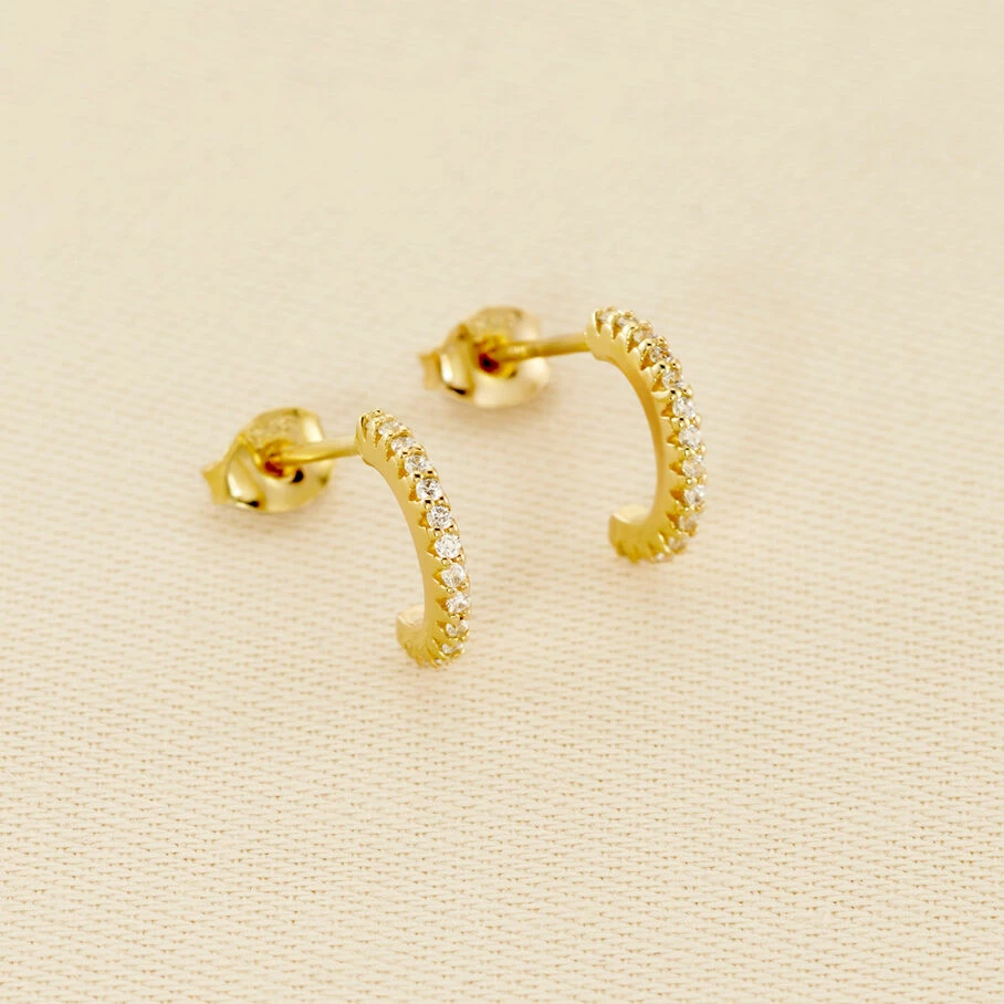 Boucles d’oreilles mini-créoles, en argent véritable dorées 750/1000, pavées d’oxydes de zirconium