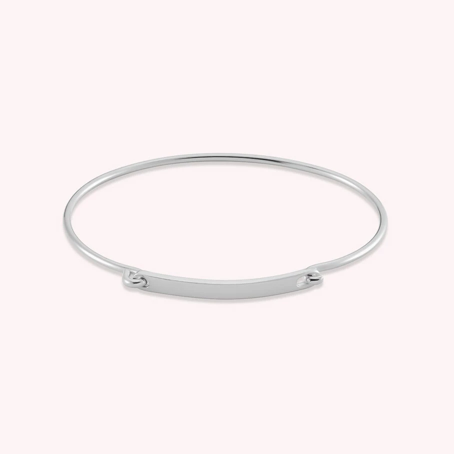 Bracelet jonc en argent véritable avec une plaque mobile sur laquelle les charms peuvent se cumuler.