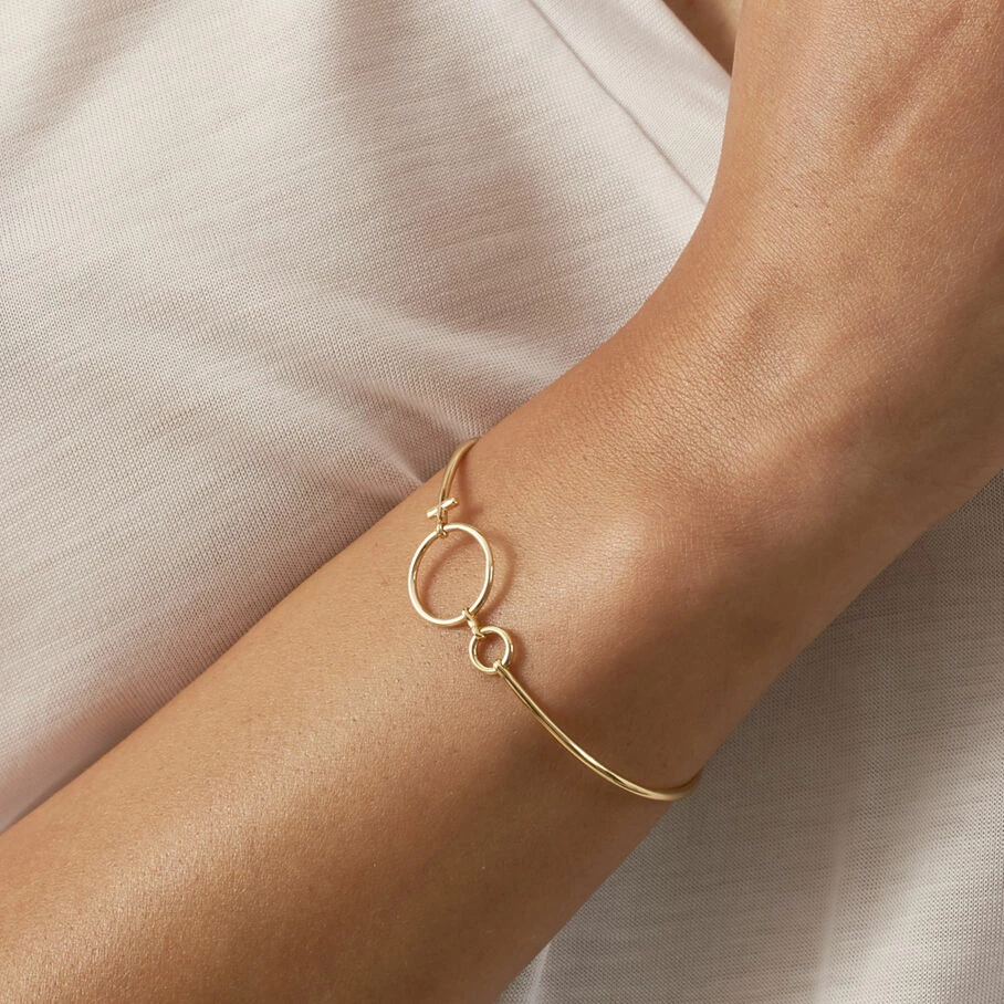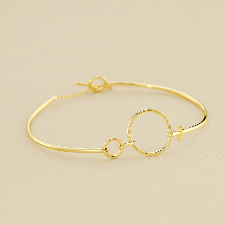 Jonc fin, en argent véritable doré 750/1000, avec memory wire, dont le motif rappelle le symbole de la femme