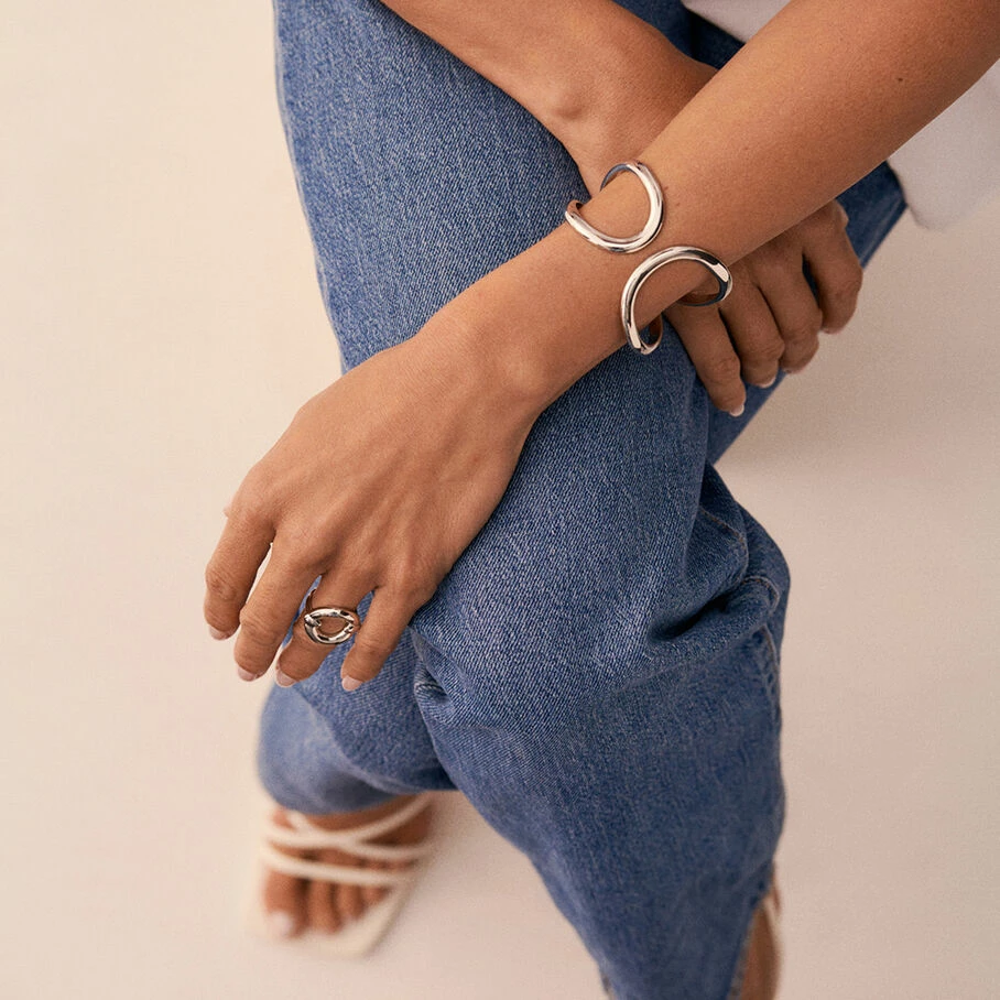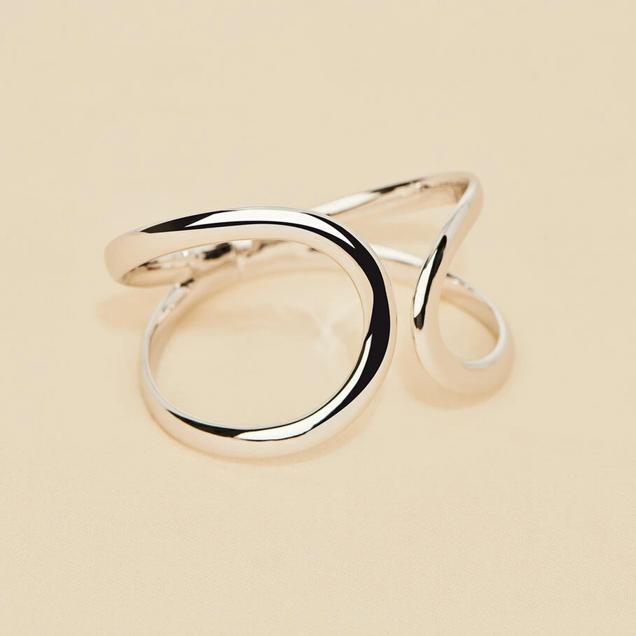 Bracelet manchette en argent véritable formé de deux gouttes en toi et moi. Ouverture par une charnière.