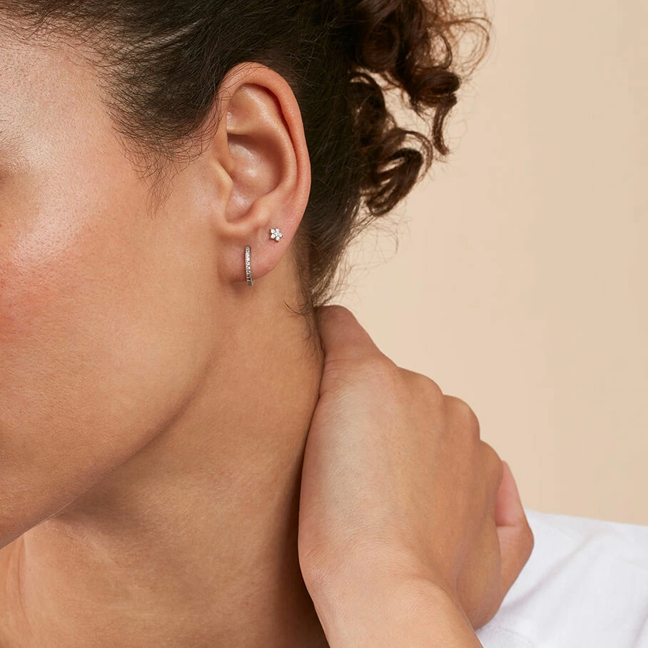 Mini créole en argent véritable de 11 mm de diamètre pavée d’oxydes de zirconium. A l’unité, pour mieux les mixer et les accumuler.
