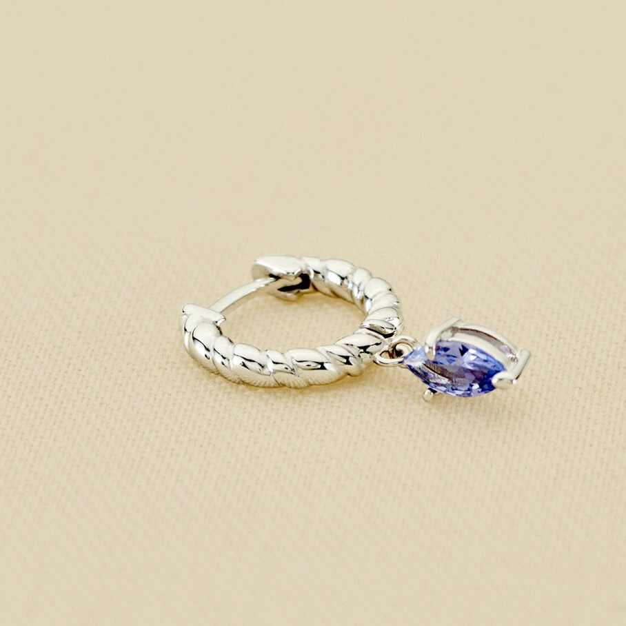 Créole torsadée avec un oxyde de zirconium navette en pampille, en argent véritable. Vendu à l’unité pour mieux les mixer et les accumuler.