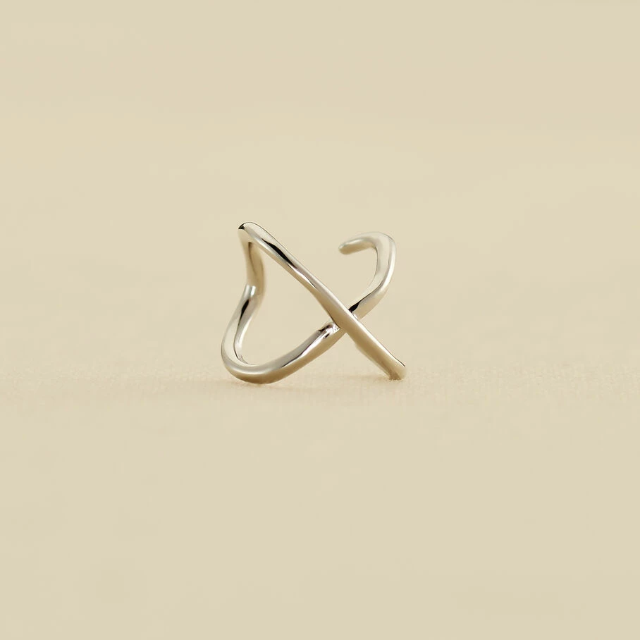 Faux piercing en argent véritable, bague d’oreille en fils croisés. A l’unité, pour mieux les mixer et les accumuler.