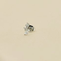 Boucle d’oreille puce, en argent 925, 3 oxydes de zirconium comme un amas d’étoiles. A l’unité pour mieux les mixer et les accumuler.