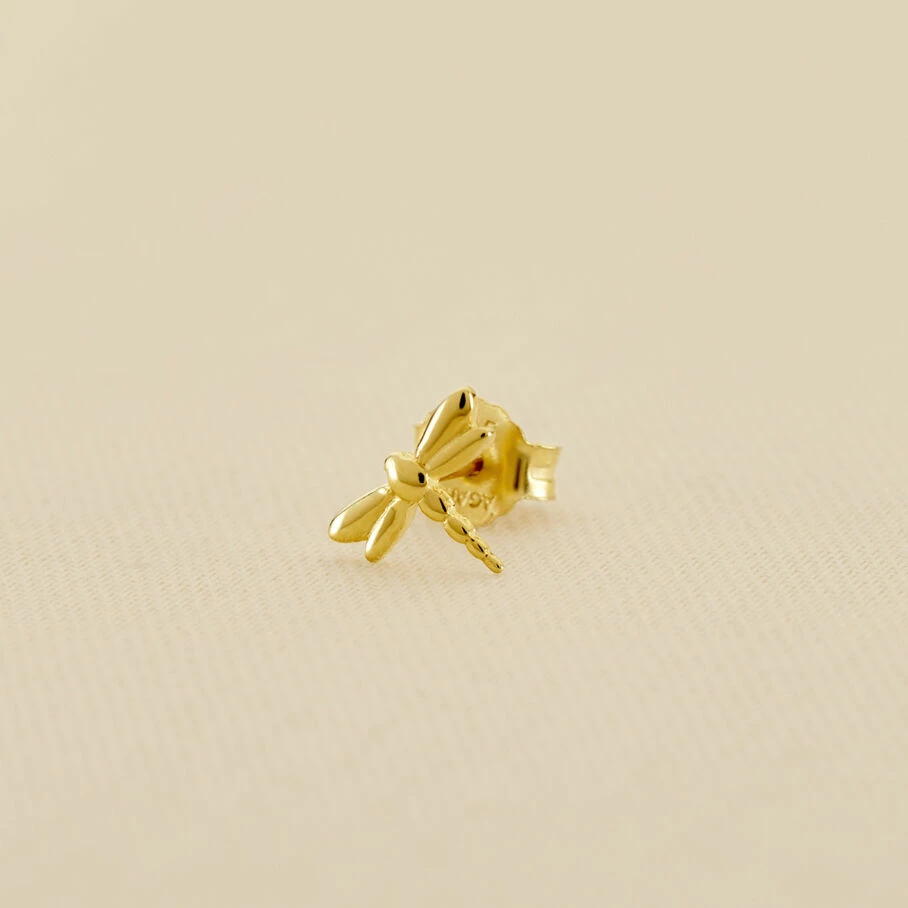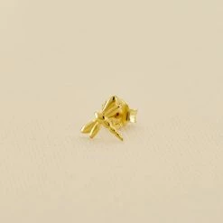 Boucle d’oreille puce en argent véritable doré 750/1000 en forme de libellule. A l’unité, pour mieux les mixer et les accumuler.