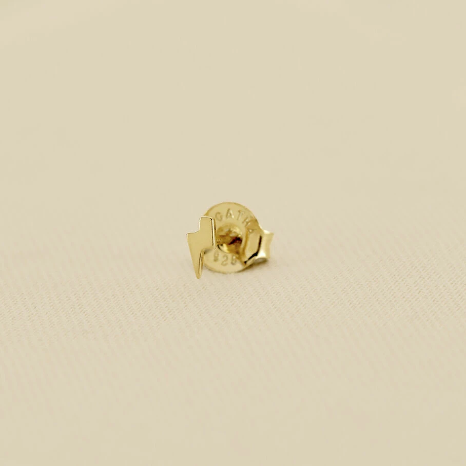 Boucle d’oreille puce, petit éclair, en argent véritable doré 750/1000. Vendu à l’unite pour mieux les mixer.