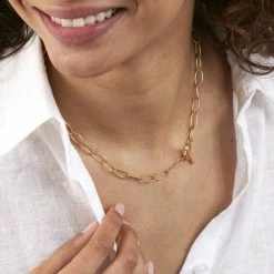 Collier Y, en argent véritable doré 750/1000, avec une fine chaîne sur laquelle sont montés deux anneaux évidés de différentes tailles